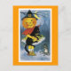 Vintage Halloween illustration shoiwng a jack o'Lantenr child holding a black cat.