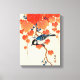 Canvas print in a vintage Japanese painting of a blue jay bird and wild grapevine, in shades of autumn orange and deep blue, on a light beige background, digitally enhanced
