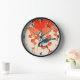 Clock in a vintage Japanese painting of a blue jay bird and wild grapevine, in shades of autumn orange and deep blue, on a light beige background, digitally enhanced