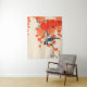 Tapestry in a vintage Japanese painting of a blue jay bird and wild grapevine, in shades of autumn orange and deep blue, on a light beige background, digitally enhanced