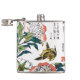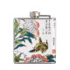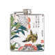 Vintage Japanese drawing, Peonies and Sparrow Hip Flask