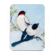 Digitally enhanced vintage Japanese ink sketch of two blue and white, ruby throated finches on a branch