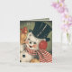 Celebrate the season with this vintage snowman illustration. This card features a jolly antique snowman in black top hat and red and white striped scarf with a cute little red bird perched on his mittened hand. A perfect throwback to the days when Christmas was lighthearted and full of excitement.