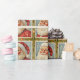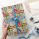 Vintage Jolly Santa Christmas Postage Stamp Wrapping Paper