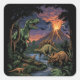 Vintage Jurassic Dinosaur Rex and Triceratops Square Sticker