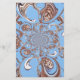 This art print showcases a kaleidoscope design infused with a vintage feel, featuring rich blue and brown hues complemented by subtle white accents.