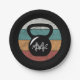 Vintage kettlebell custom monogram name initial with multiple coloured striped circle grey, turquoise, orange and red on a black blackground. Perfect for anyone who is lifting, fitness, training, bodybuilding and going to the gym.
