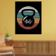 Vintage kettlebell custom monogram name initial with multiple coloured striped circle grey, turquoise, orange and red on a black blackground. Perfect for anyone who is lifting, fitness, training, bodybuilding and going to the gym.