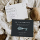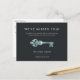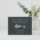 Announce the grand reopening of your business with these modern and elegant postcards for realtors, real estate brokerage firms, and property management firms. Design features modern white lettering on a soft black background accented with a vintage skeleton key illustration in faux aqua foil. Personalise the front and back with your business reopening details, including location and hours, and what covid related measures you have implemented to keep customers, clients, and staff safe.