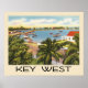 Vintage Key West Florida illustration of Garrison Bight with boats in the harbour, palm trees, and a few buildings. Bright retro colours capture the tropical mood in this vintage image from early to mid 20th century. The name Key West is at the bottom in a retro font. Change the background poster colour if you like.