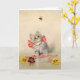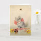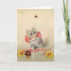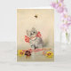 Retro / Vintage Cat note card. Adorable white kitten in a big pink bow, looking at a hovering bumble bee! Perfect for a cat lover!