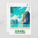 Capture the beauty of Krabi, Thailand with this charming vintage postcard featuring an illustration of its pristine beaches. This postcard brings to life the serene shores and turquoise waters that make Krabi a tropical paradise. Perfect for sending warm greetings or as a keepsake to remember your travels.