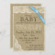 Pretty baby blue bow over ivory lace and burlap, as sweet printed look on the linen or felt paper for a country vintage baby shower.