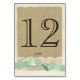 Vintage lace, mint green bow and burlap printed table number card to compliment our invitation set, can be personalised and ordered individually. All parts of this card are printed. There is no real ribbon, burlap or lace attached.