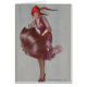 A vintage illustration by Sergio Bompard of a fashionable young woman who is caught in the rain and is trying to hold onto her hat in the wind while also carrying an umbrella. The Italian artist, Sergio Bompard, is a mystery as far as his life. Little is known about him and little is published online about him except that he was a prolific artist who specialised in illustrations for magazines and postcards during the World War I era. His subject matter was primarily beautiful women of the time, however, he also painted romantic couples, art deco style illustrations of women in the latest fashions (often with greyhound dogs), as well as children. This card is blank inside for your own message