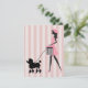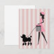 Vintage lady all dressed up in pink walking a cute black poodle
