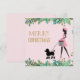 Vintage Lady all dressed up in pink walking a cute black poodle with Merry Christmas greeting