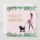Vintage Lady walking black poodle Merry Christmas Holiday Card