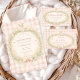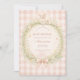 A soft vintage baby shower design inspired by classic storybook illustrations. Gentle wildflowers form a delicate wreath around a sweet lamb, finished with a blush ribbon bow and a warm gingham background that adds a cozy nursery feel. The airy watercolor style and muted pastel palette create an elegant yet whimsical aesthetic perfect for celebrating a new arrival. Designed for parents who love timeless, cottagecore-inspired baby shower themes with delicate botanical details.