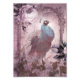 A regal peacock sits proudly featured in an old vintage frame, surrounded by elegant floral adornments.