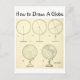 This postcard is a reproduction of a vintage illustration from "Drawing Made Easy: A helpful book for young artists; the way to begin and finish your sketches, clearly shown step by step," by George Edwin Lutz. It shows how to draw a globe.
