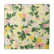 A vintage-style pattern ceramic tile featuring bright lemons with lush green leaves, accented by delicate white and pink flowers, all set against a cheerful yellow background. This nostalgic botanical design captures the essence of sunny days, evoking a timeless summer feel perfect for seasonal charm and nature-inspired aesthetics.