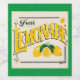 This design is based on a vintage sign for lemonade. Done in colours of white, yellow, green and black, it features a cluster of lemons, a tiny sun and says "Fresh Lemonade".