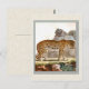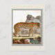 Postcard with a vintage natural history illustration of a leopard with plants and a rocky mountain in the background. Digitally cleaned and enhanced antique image from Collection Des Animaux Quadrupeds by Georges-Louis Leclerc, Comte de Buffon, 1754. Framed and backed with a light tan parchment texture.