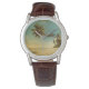 The watch looks really great! Very sharp and well done. The leather band is really nice, though for a man's watch I think it should be longer. Unfortunately, it isn't big enough for my husband's wrist but I will get a replacement because he is very excited to wear it!