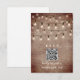 Industrial theme wedding RSVP with vintage edison hanging lights over a weathered rustic brick background.