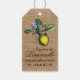 Give the gift of homemade Limoncello. This kraft gift tag shows an image of a vintage lemon illustration on a background image of burlap NOT REAL BURLAP. Personalised with the year it was made. The back has a red heart "made with love", and is personalised with your name. Customise the old fashioned font and text. A chic and trendy look, for an elegant homemade gift or wedding guest thank you favour. To see more wonderful products, Please visit "The Hungarican Princess - A Boutique" @ zazzle.com/hungaricanprincess. Traditional Lemoncello , Limoncello or Lemon Canning. Wine tags with lemon image.