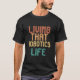I give wanted to give this a 4 instead of a 5 because these Basic DARK T0shirts run unexpectedly SLIM or Narrow. Which is great if you do not have a potbelly, but I have a paunch. It isn't the shirt's fault that I've got a beer belly. The design and shirt itself is a quality cotton shirt. The color is more of a deep purple, but still a very pretty color. The Basic DARK T-shirts run a bit SLIMMER than the Basic Ts. The neck is a fraction narrower (or seems to be narrower) also. I'm a paunchy middle-aged woman and my neck is 12 inches (31cm) thick and the neckline fell about the same as in the photo of the man, and I had the desire to tug it a bit. So if you're a thick necked man or like loose shirts, be aware these are slimmer shirts. Once I get rid of my lockdown paunch it'll look great. The shirt washed well in cold water with no apparent bleeding. We don't have a dryer, so it hung dry. Did not shrink. Love the colors and the design. The design looks smaller on my shirt than it does on the model on-line. But still, it looks good on the shirt. The printing looks as it does on the model, just the size seems fractionally smaller. Washed garment in cold water, hung dry and design appeared unaffected.