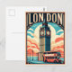 • This charming vintage-style postcard captures the iconic sights of London, featuring a classic double-decker bus and the famous Big Ben clock tower.