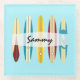 Vintage longboards design glass coaster with customisable text.