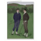 Two golfers in period attire chatting during a round of golf. Done in a vintage style. Great gift for any golf player or golf lover. sgb01