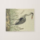 This vintage look puzzle design features a depiction of a tall, standing bird near some cattails.