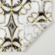 A sophisticated black and gold pattern featuring ornate floral and filigree elements in a symmetrical tile design. Inspired by vintage Baroque and Art Deco styles, it exudes luxury and elegance. Perfect for adding a touch of opulence to any space.