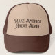 Show your support in style with this vintage-inspired Trucker Hat. Featuring "Make America Great Again" in bold letters, this brown cap has a classic design and adjustable strap for a comfortable fit. Perfect for political enthusiasts and collectors.