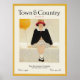 1922 Town and Country Magazine cover depicts a young schoolgirl in vintage period fashion hat and dress sitting upon a wall holding a yellow balloon on a string. Vintage decor for your walls.