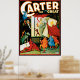 Vintage illustration 1926 magic poster featuring the magician Charles Carter, Carter the Great (1874-1936). This vintage magic poster has a the magician Carter with his beautiful assistant in a box with devils and skeletons on stage with them. Do the Dead Materialise? The Absorbing Question of All Time.