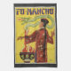 Vintage illustration magic poster featuring Fu-Manchu, 1924. This advertisement poster has a Chinese theme with the magician dressed in a red robe with his hair in a long braid. The magician is standing in front of a cauldron with flames and a green dragon swirling in the air.