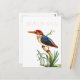 Vintage Maldives travel postcard featuring a vintage Kingfisher tropical bird print with modern mid-century art deco typography.