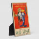 It is a reproduction of vintage 1926's travel poster issued by G.S. Yuill & Company Ltd Managing Agents, Sydney to advertise A.O Line cruise ship services to Thursday Island - Manila - Hong Kong - Japan by British Steamers SS Changte and SS Taiping. It features a lady holding a floral umbrella and wearing a sun hat riding in a rickshaw cart pulling a man wearing a wide brimmed hat. You can see more people, Asian style buildings and signs on bamboo poles on a red background. Make your travel memories everlasting with this beautiful souvenir tabletop plaque with easel. An ideal gift for your loved ones or any collector of vintage travel ads and art