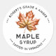 Editable homemade maple syrup canning label featuring a vintage style maple leaf illustration. Make your own canning labels for your favourite homemade recipes. Perfect for preserves, homemade gifts or as kitchen pantry organiser.