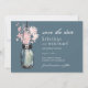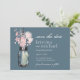 Perfect for a country style wedding or maybe you just love Mason Jars! Old vintage Mason Jar hanging on a hook with country wildflowers. A wonderful BLUE/GRAY background colour with black drawing of a Mason Jar filled with shades of PINK country wildflowers. If you have any questions on this design or want a colour change please email me paula@labellarue.com Also check out the WEDDING INVITATIONS, RSVP, RECEPTION and GUEST SEATING Cards to match!