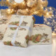 Wrap your holiday presents with this cute wrapping paper featuring a sweet vintage kitty cat nestled in a bag of Christmas mail in a red and green holly berry wreath pattern on a light brown textured background. The text says Meowy Christmas and can be customised to your name or to say Merry Christmas or Happy Holidays.