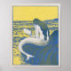 Mermaid reading a book vintage art image from around 1900 in blue, black, and yellow.