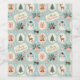 A charming vintage-style Christmas pattern featuring festive elements like reindeer, snowmen, Christmas trees, bells, gifts, pinecones, and holly. Set against a soft pastel blue background with pink and gold accents, this seamless design captures the nostalgic warmth of the holiday season. Perfect for wrapping paper, holiday cards, fabric, and festive decor.