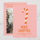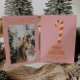 If you are looking for a simple minimalist beautiful and easy editable Christmas card. This one is perfect for you. And as you see the design features a vintage cream beige and red Christmas candy bar , With beige and red hand written typography of MERRY CHRISTMAS. And your family name and year under it. And In the back you got a a customisable Christmas greeting paragraph and family photo. All on warm pink background. So go ahead and make your Christmas greeting simple and yet unique and warm.