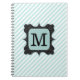 Vintage Mint Green Stripes Pattern Black Monogram Notebook